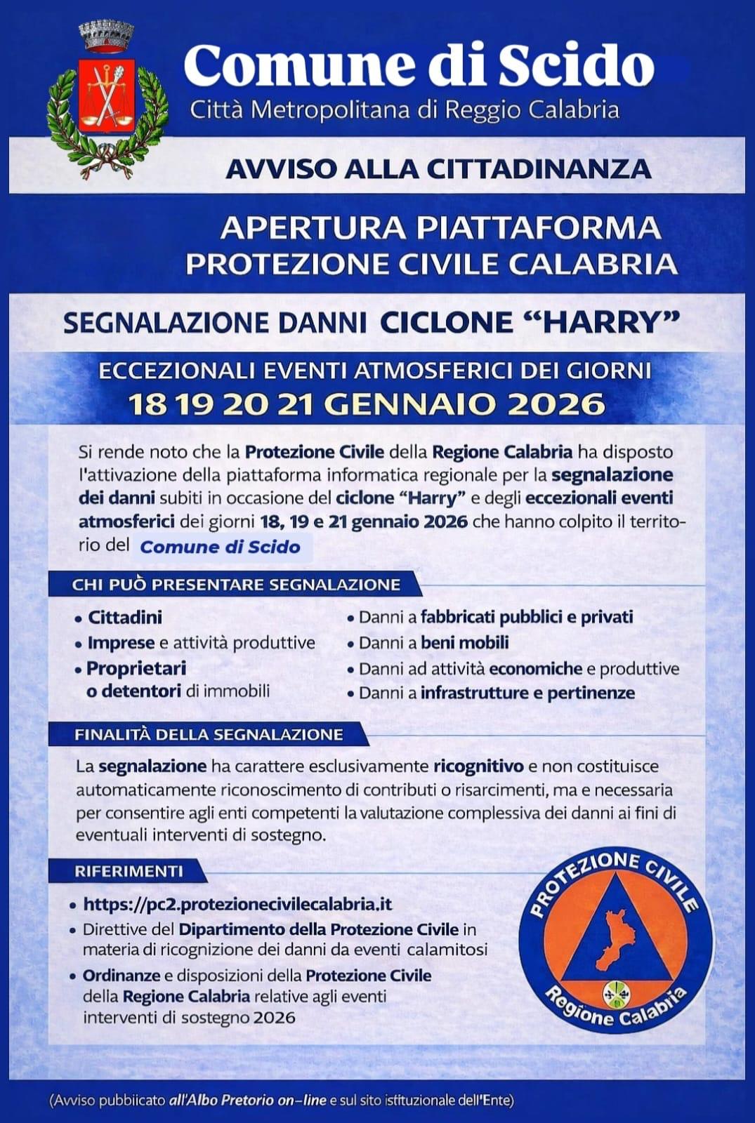 Apertura piattaforma Protezione Civile Calabria _ Segnalazione danni ciclone Harry
