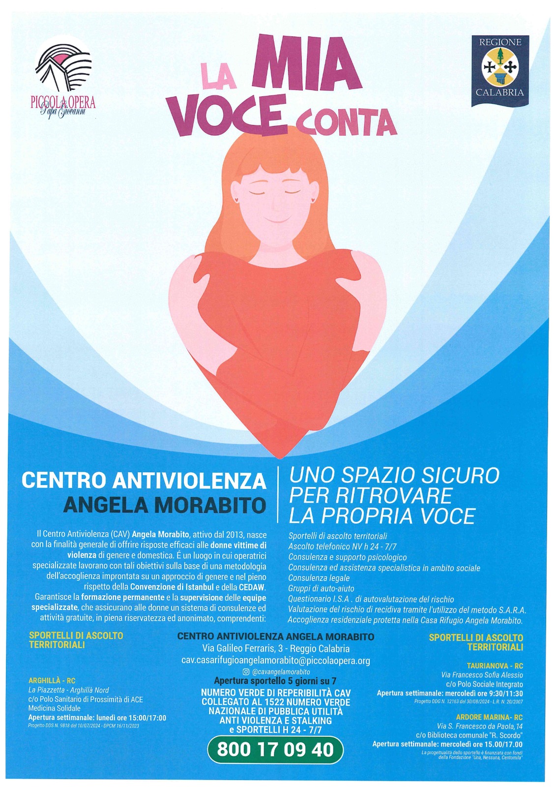 È attivo presso il Polo Sociale Integrato di Taurianova, con sede in Via F.S. Alessio, ogni mercoledì dalle ore 9.30 alle ore 11.30 uno Sportello di ascolto territoriale, telefonico, psicologico e di consulenza specialistica dedicato alle donne vittime di violenza di genere e domestica.